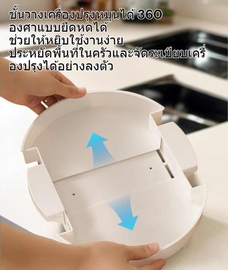 ● ชั้นวางเครื่องปรุงหมุนได้ 360 องศาแบบยืดหดได้ ช่วยให้หยิบใช้งานง่าย ประหยัดพื้นที่ในครัวและจัดระเบียบเครื่องปรุงได้อย่างลงตัว